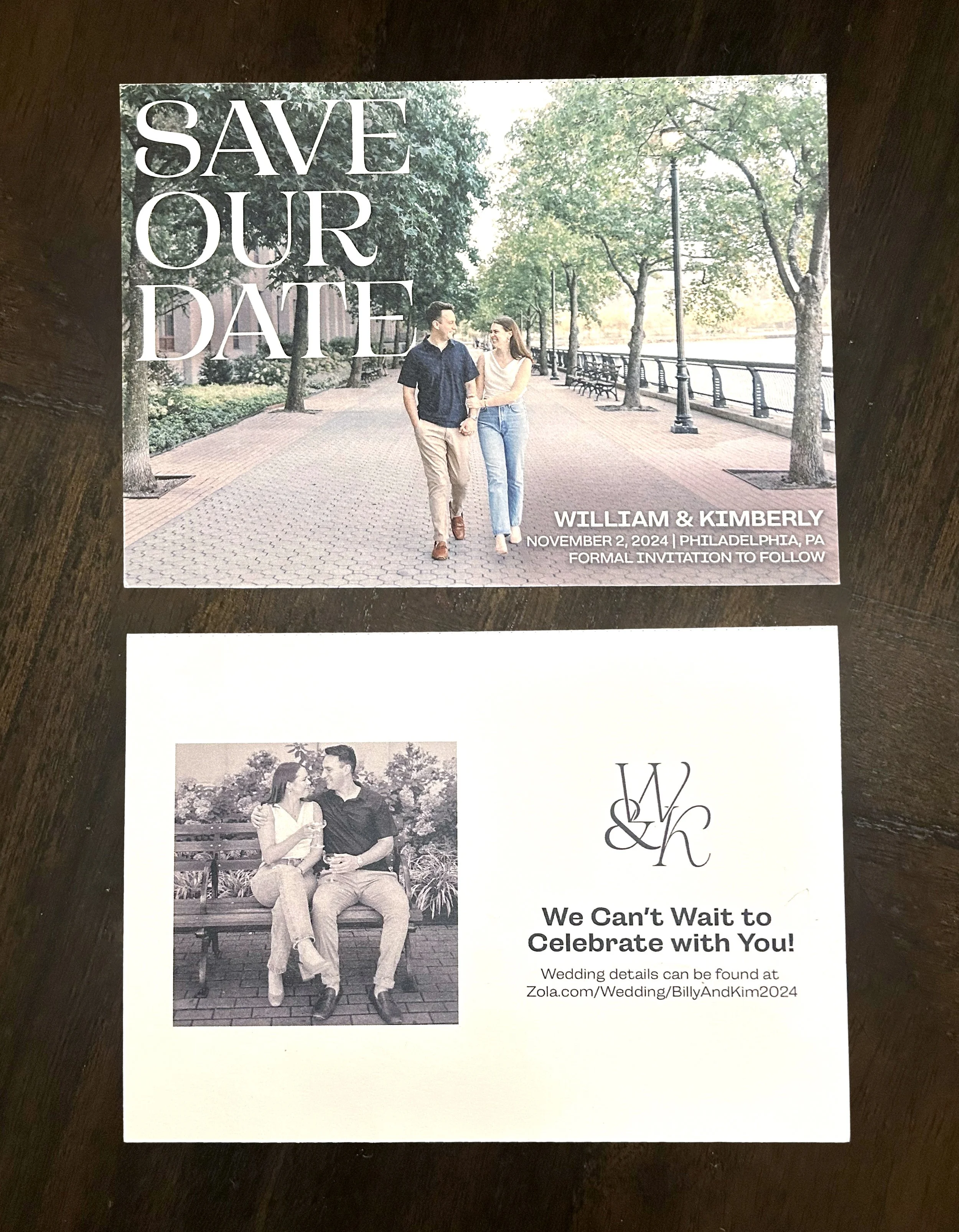 While the main invitations are very formal, I had a bit more fun with the Save the Date and Bridal Shower invites. The Save the Date features their engagement photos prominently, and the Bridal Shower invite is covered in flowers to match the theme “Love is in Bloom.” For the Bridal Shower, I also created a custom floral sign.