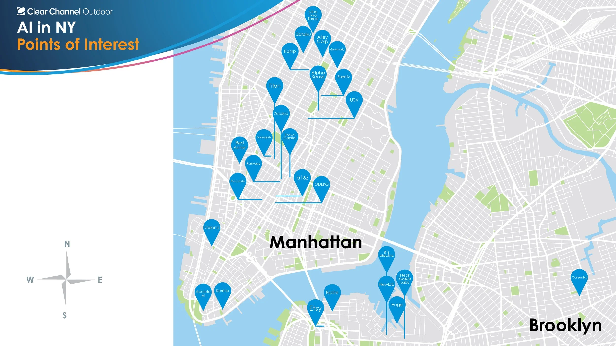 To help clients see the potential of their campaigns in a more engaging way, I designed detailed maps of Manhattan and Brooklyn. Each map features hand-selected points of interest, designed to bring the energy and character of each area to life and inspire strategic ad placement.